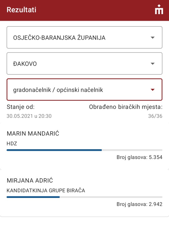 U drugom krugu lokalnih izbora Marin Mandarić je novi, stari gradonačelnik Đakova