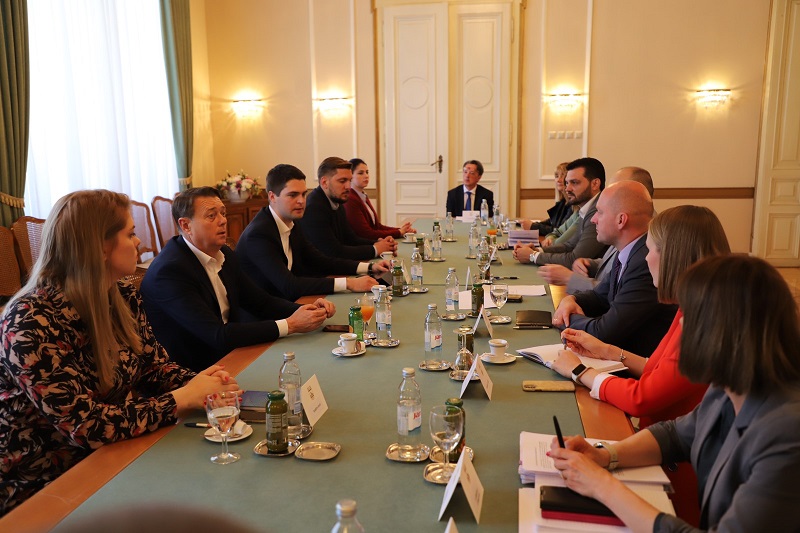 Posjet je započeo sastankom u Osječko-baranjskoj županiji, kojem su ispred Osječko-baranjske županije uz župana Anušića i zamjenika župana Josipa Miletića prisustvovali Gabrijela Čurković, pročelnica Upravnog odjela za investicije i razvojne projekte, Ivana Katavić Milardović, pročelnica Upravnog odjela za gospodarstvo i Denis Ćosić, ravnatelj Javne ustanove Županijske razvojne agencije. Iz Grada Osijeka sastanku je prisustvovao zamjenik gradonačelnika Dragan Vulin i pročelnica Upravnog odjela za programe Europske unije Kornelija Mlinarević.
